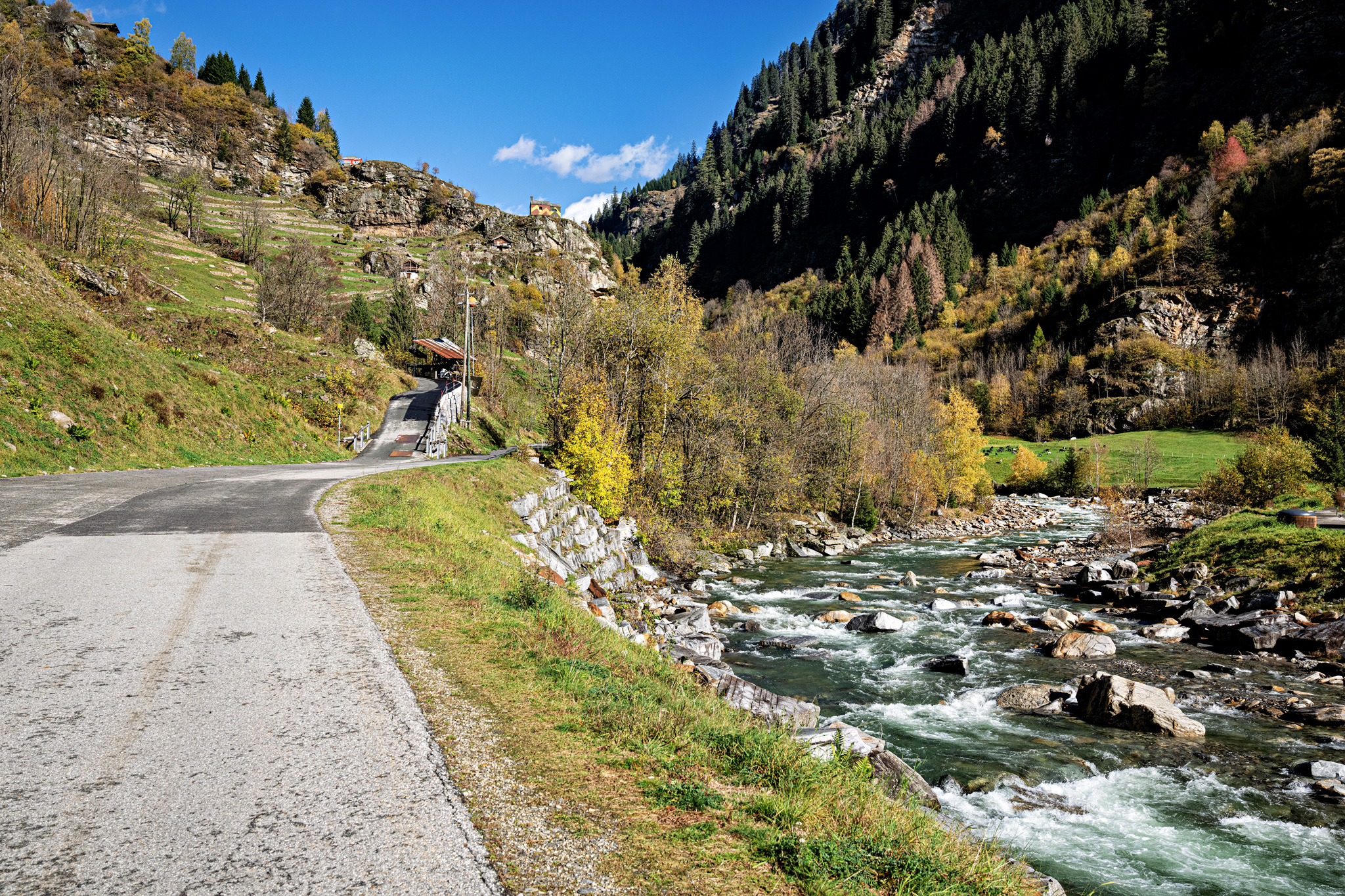 Zu Fuss geht es von Sabbion, der Häusergruppe gegenüber von Rossa, weiter hinauf zur Siedlung. Beim Brunnen lohnt es sich eine erste Pause einzulegen, bevor es noch ein Stück weiter hoch geht zur rot gestrichenen Kapelle Madonna del Sangue. Oben angekommen, ist die Aussicht wunderschön. Wer mag verlängert die Wanderung und spaziert weiter hinauf zum Pro de Leura auf 1416 Meter. Ansonsten geht es hinunter zur dritten Kapelle Santa Maria Maddalena al Calvario, die in kräftigem Gelb und Braun leuchtet. Der Tag in Rossa kann mit dem Besuch der Kunstwerke aus Lärchenholz (Projekt Ispace) erweitert werden. Sie stehen entlang eines Wanderweges im Wald und ermöglichen den Besuchern eine andere Wahrnehmung von Raum, Klängen und Natur.