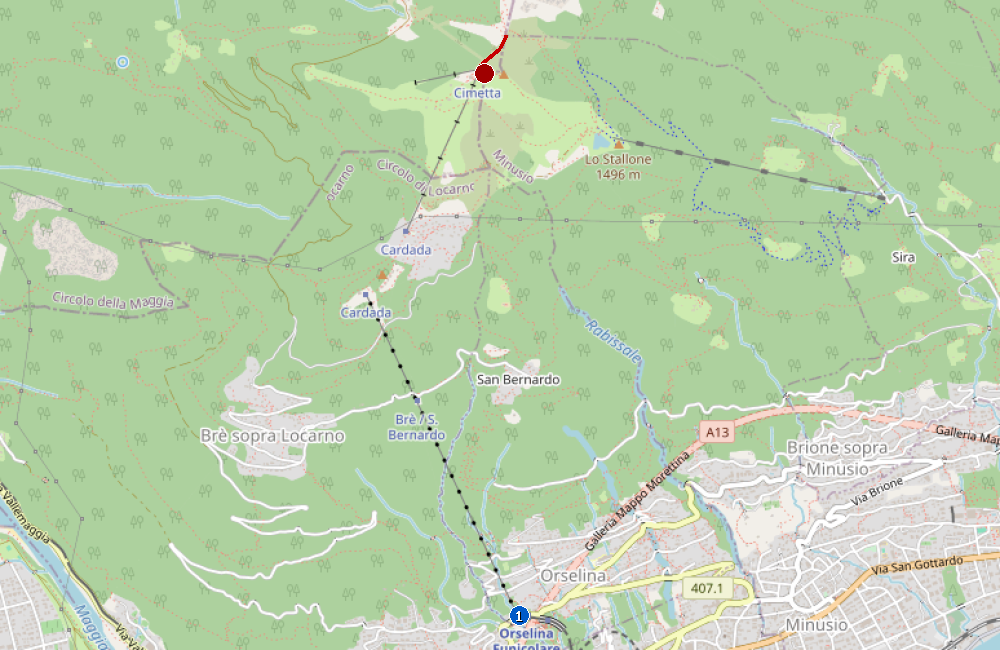 Am bequemsten geht’s über Orselina: Die Luftseilbahn bringt dich in rund 5 Minuten von ca. 395 m ü. M. hinauf nach Cardada auf 1’340 m ü. M. Wer noch höher will, fährt mit dem Sessellift weiter nach Cimetta (rund 1’670 m ü. M.).