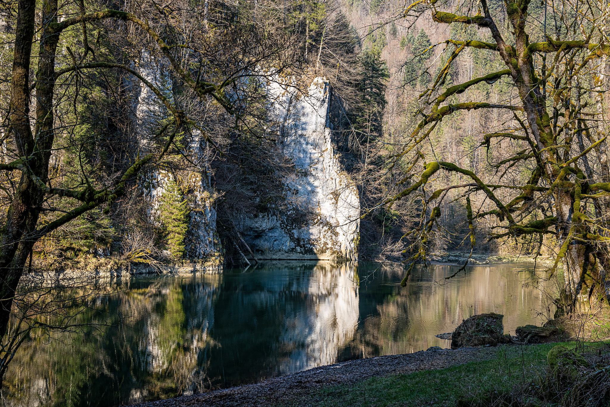 Der Doubs ist ein wildromantischer Jurafluss, der in Frankreich entspringt, kurz in die Schweiz hinüberwechselt und streckenweise die Grenze zwischen beiden Ländern bildet. Sein Lauf ist bekannt für breite Mäander, steile Felswände und stille Tannenwälder – ideal für Naturgenießer.