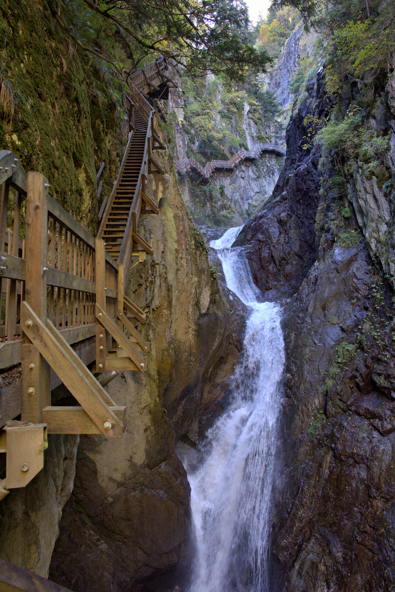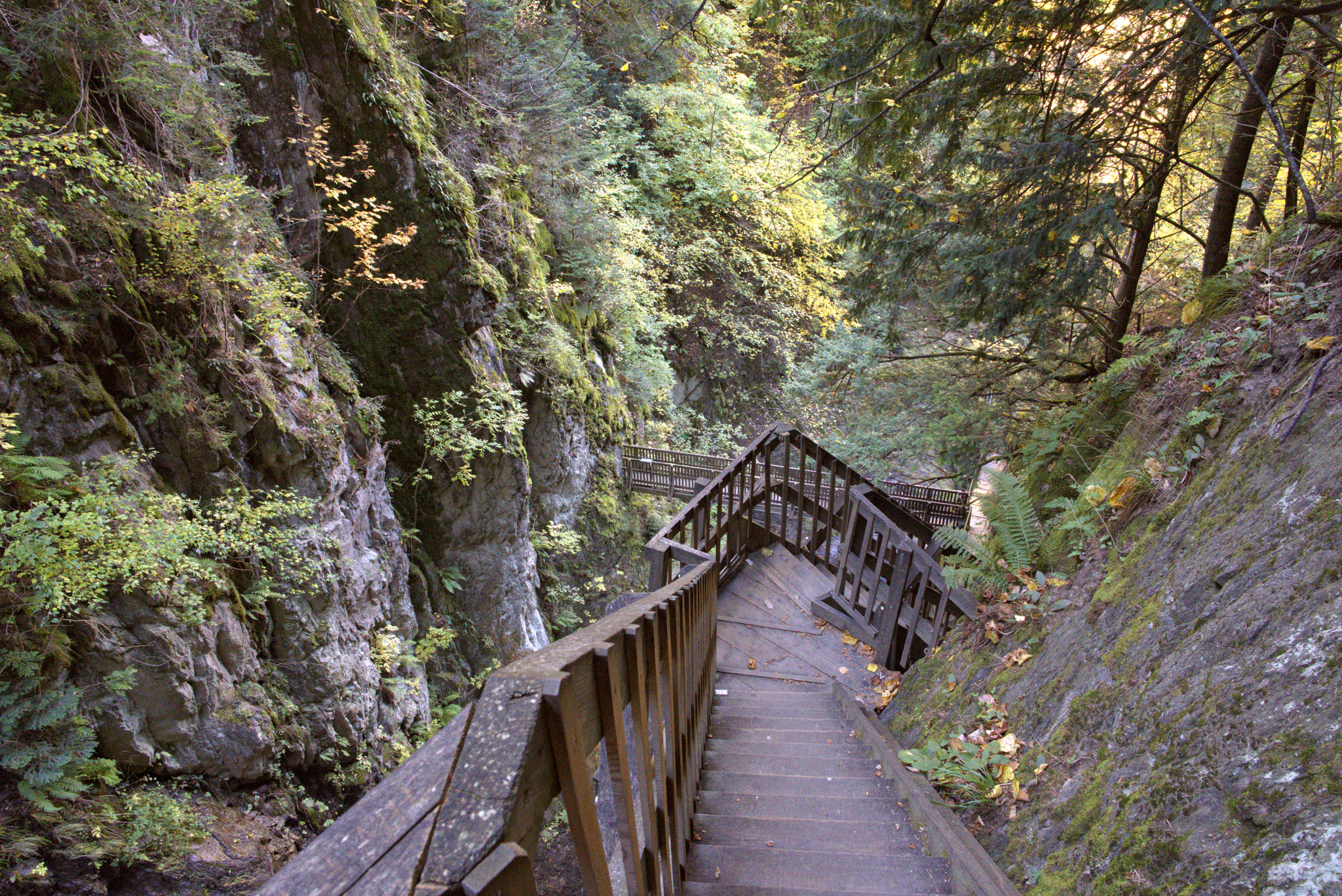 Unterwegs eröffnen sich immer neue Perspektiven auf die Felswände und die 14 Wasserfälle, die hier in die Tiefe stürzen. Insgesamt warten 330 Stufen, deshalb sind gutes Schuhwerk und etwas Trittsicherheit empfehlenswert. Für die eigentliche Schluchtpassage rechnet man etwa eine Stunde; zurück geht’s oft gemütlicher durch den Wald.
