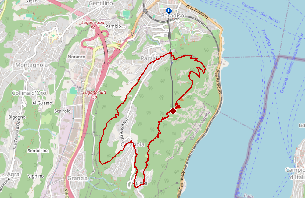 Oben laden Aussichtsterrassen und mehrere Spazier- und Wanderwege zum Weiterziehen ein, z. B. hinunter Richtung Carona/Ciona oder Pazzallo/Paradiso. Wer es sportlicher mag, findet am Berg auch eine Via Ferrata (mit entsprechender Ausrüstung und Erfahrung).