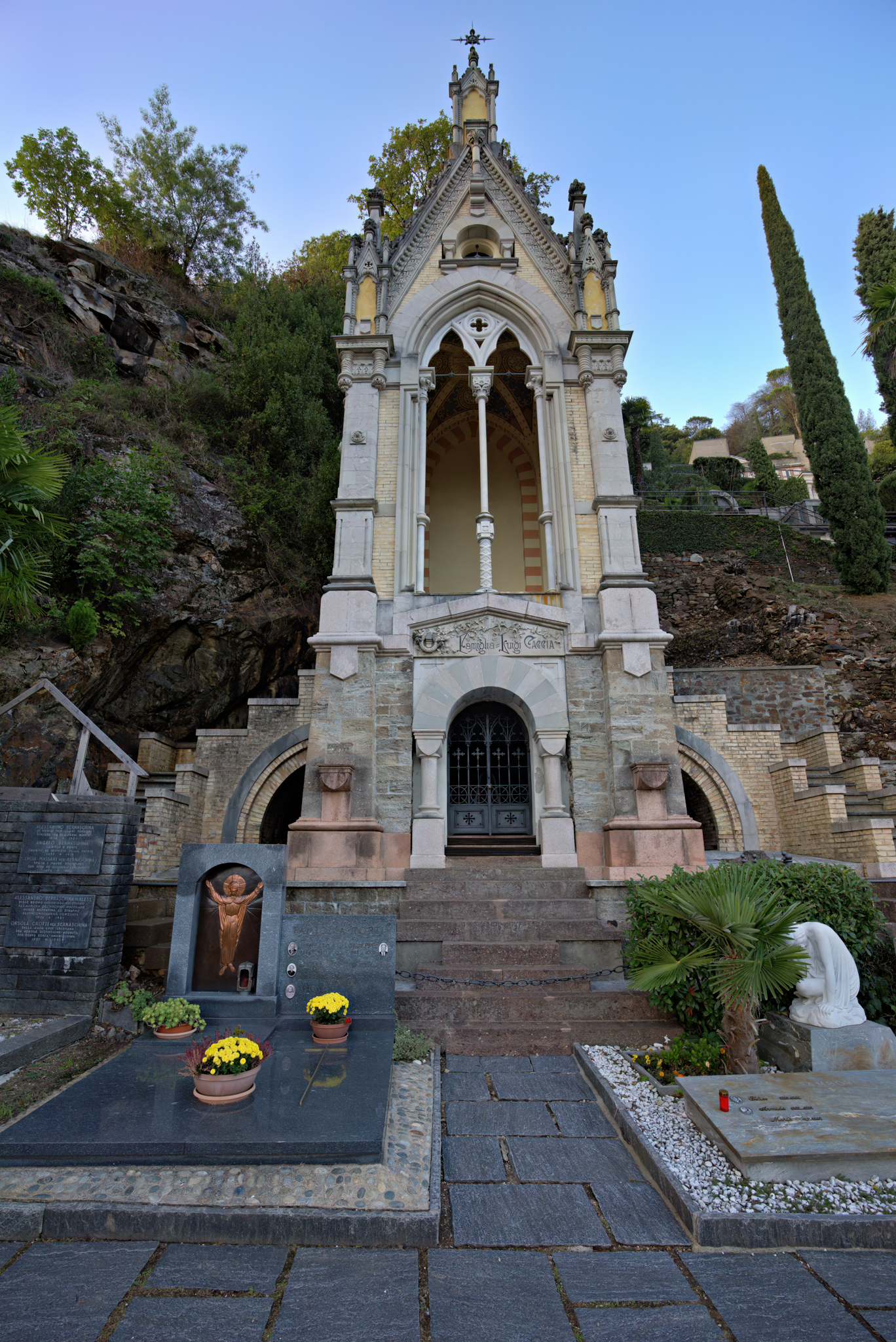 Von hier führt ein spektakulärer Kreuzweg über rund 400 Stufen hinauf zur Wallfahrtskirche Santa Maria del Sasso. Ein Brunnen und mehrere Bildstöcke begleiten den Aufstieg. Oben thront die Kirche flankiert von einer achteckigen Taufkapelle und wacht wie eine Schutzheilige über den Ort. Daneben befindet sich ein monumentaler Friedhof, wo internationale Prominenz bestattet ist. In der Wallfahrtskirche sind Fresken aus verschiedenen Epochen, eine schöne Steinkuppel sowie eine Orgel, die um 1700 gebaut wurde, zu bestaunen.