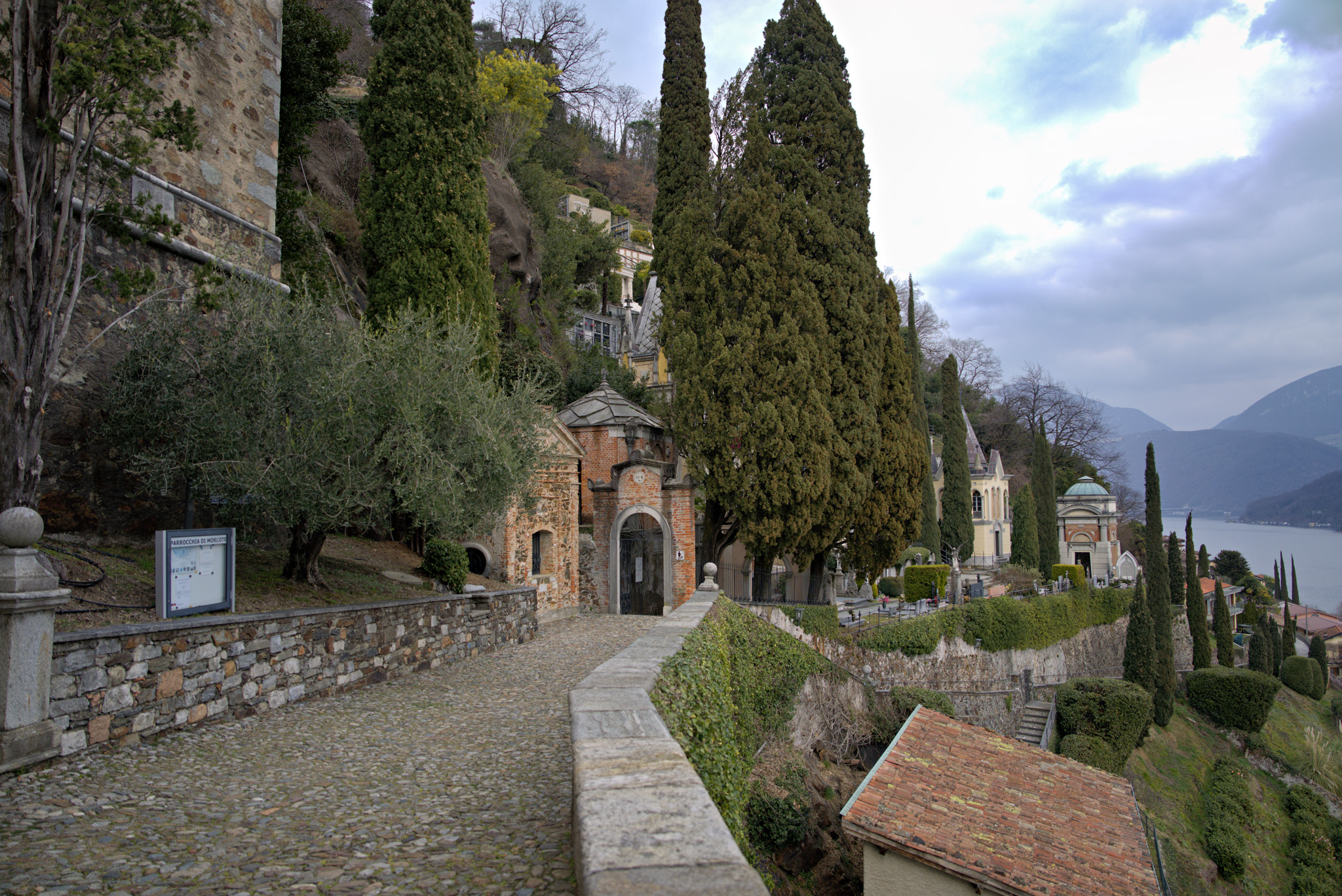 Morcote ist geprägt durch seine Zweiteilung in einen profanen Teil am See und einen kirchlichen am Hang. Beide Teile verfügen über monumentale Ausprägungen.